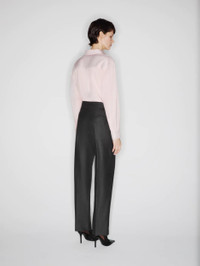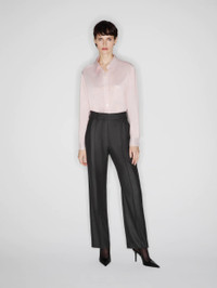Pleated straight-leg virgin wool dark grey pants In a charcoal grey wool blend, these tapered, high-waisted trousers with a pressed crease down the leg and a single Smiley pocket in back feature front pleats for a flattering fit. Matched with the Astoria Everyday blazer, they’re perfect for the office, especially set off by a light-toned shirt like the Catalina Anabas model. - High waist - Tailored straight-leg cut - Front pleats - Belt loops - Concealed zip and hook fastening - Back Smiley pocket 100% Virgin Wool Lining: Viscose Made in Italy