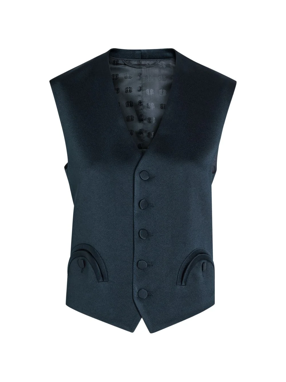 buttoned flap pocket vest Highlights - Dark navy blue - V-neck - Button fastening - Flap pockets - Buttoned pockets Imported Composition Outer: Acetate 100% Lining: Viscose 100% Washing instructions Dry Clean Only