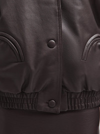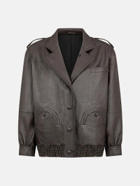 Oversized padded bomber jacket in brown leather BLAZE Milano’s slightly oversized, buttery-soft napa bomber jacket featuring iconic Smiley pockets is a key mid-season piece, especially paired with the matching mini skirt. - Single-breasted - Oversized cut - Shoulder tabs - Black lining - Leather-covered buttons - Notch lapels - External Smiley pockets - Elasticated hem 100% Lamb leather Lining: Viscose Made in Italy