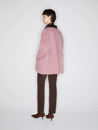 Women’s pink wool and cashmere jacket with double pockets A slim-fitting mid-length jacket in a wool/cashmere blend with a contrasting collar in chocolate-brown corduroy, it’s enhanced by classic BLAZE Milano details: two large Smiley pockets, a small breast pocket and glossy loden-effect buttons. - Contrasting chocolate-brown collar - Two large Smiley pockets - Small breast pocket - Glossy loden-effect buttons 94% Virgin Wool 6% Cashmere Lining: 100% Viscose Made in Italy