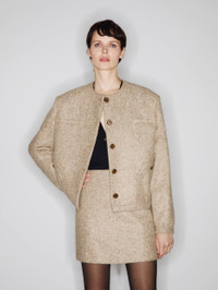 Mini skirt in beige alpaca and wool blend A high-waisted, slim-fit mini skirt that hits mid-thigh, to pair with the matching bolero. - Mini-length, designed to be worn at the waist - Slim fit - Concealed zip fastening along back 68% Alpaca 34% Virgin Wool Lining: 100% Viscose Made in Italy