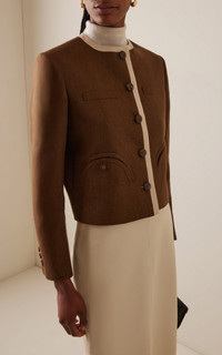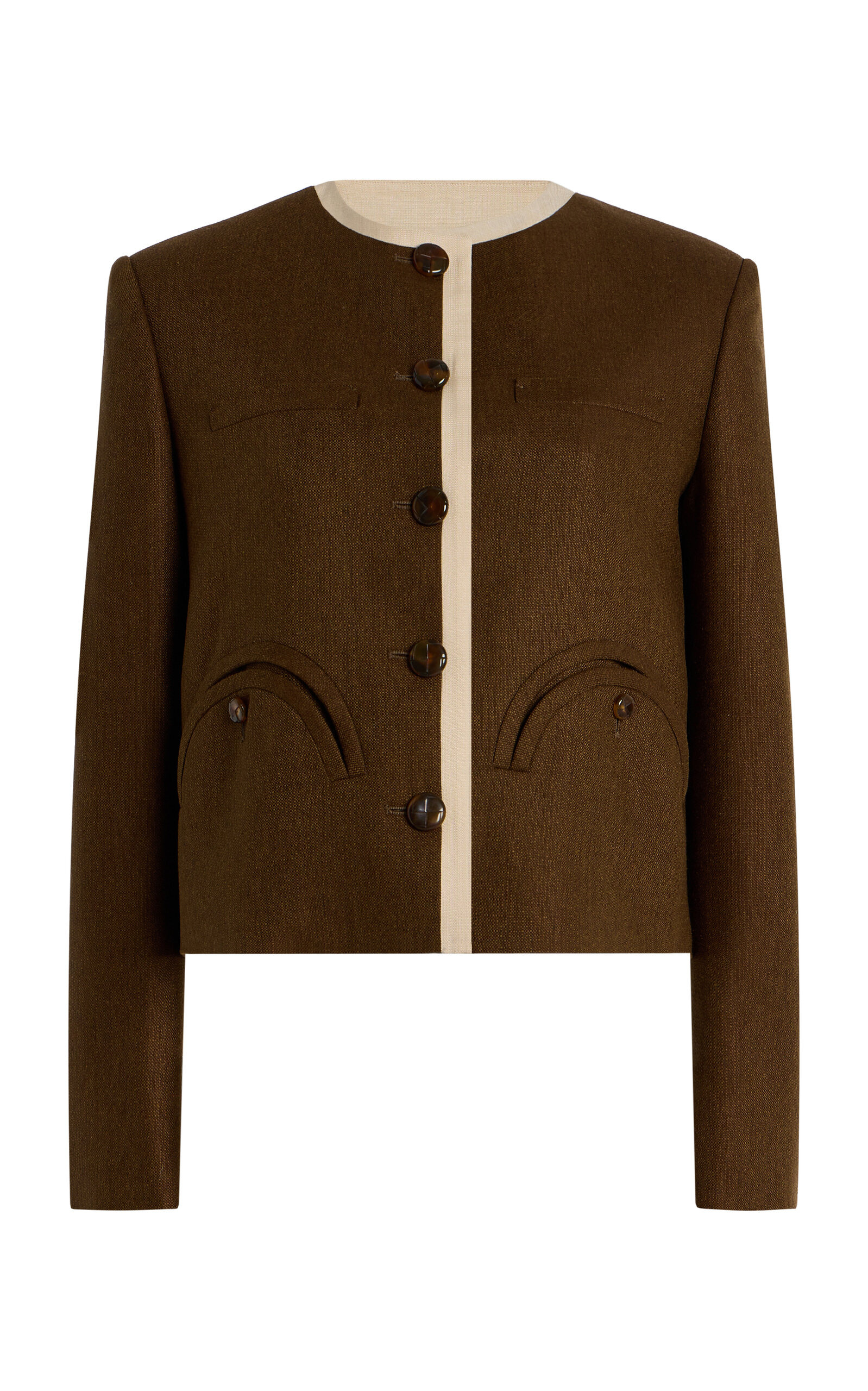 Blazers are a wardrobe essential—and those by the Milan-based trio of former fashion editors have been honed and perfected, season after season, to ensure they're a cut above the rest. Whichever you choose—you can’t go wrong. The hip-grazing 'Shamo' is woven from pure silk with a subtly textured finish and contrasting trim. The lapel-less style has a cropped design with lightly padded shoulders and signature "Smiley" pockets. PRODUCT DETAILS - Pre-Fall '25 - Button fastening - Composition: 100% silk; Combo: 100% viscose - Designer color: Chocolate - Dry clean - Made in Italy SIZE & FIT - Designed for a slim fit