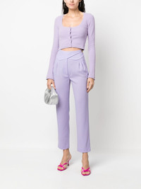 cropped straight-leg wool trousers lilac purple virgin wool dart detailing high waist straight leg cropped leg side button fastening concealed front zip fastening two side inset pockets rear welt pocket Made in Italy Composition Outer: Virgin Wool 100% Lining: Viscose 100% SIZE & FIT Model measurements Height 5 ft 10 in(1.79 m) Bust/Chest 33.07 in(84 cm) Hips 35.82 in(91 cm) Waist 24.01 in(61 cm) Measurement INSIDE LEG 29.92 in(76 cm) WAIST 28.34 in(72 cm) HIPS 40.15 in(102 cm) Washing instructions Dry Clean Only