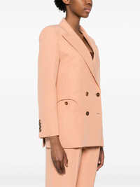 double-breasted blazer Highlights - Pink - Front button fastening - Two side button-fastening pockets - Long sleeves - Buttoned cuffs Made in Italy Composition Outer: Silk 62%, Linen/Flax 38% Lining: Acetate 60%, Viscose 40% SIZE & FIT Model measurements Height 5 ft 11 in(1.81 m) Bust/Chest 33.07 in(84 cm) Hips 36.61 in(93 cm) Waist 24.4 in(62 cm) FittingInformation Designed for a relaxed fit, this piece allows for comfort and movement when worn The internal shoulder pads offer a structured shape Made from a midweight non-stretch fabric