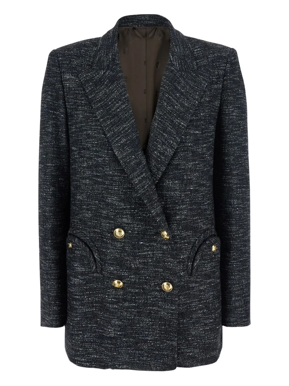 double-breasted flap-pocket blazer Highlights - Grey - Double-breasted fastening - Gold-tone buttons - Flap pockets - Structured shoulders Imported Composition Polyamide 28%, Wool 17%, Linen/Flax 14%, Silk 9% Lining: Alpaca 32% Washing instructions Read Manufacturer Guidelines