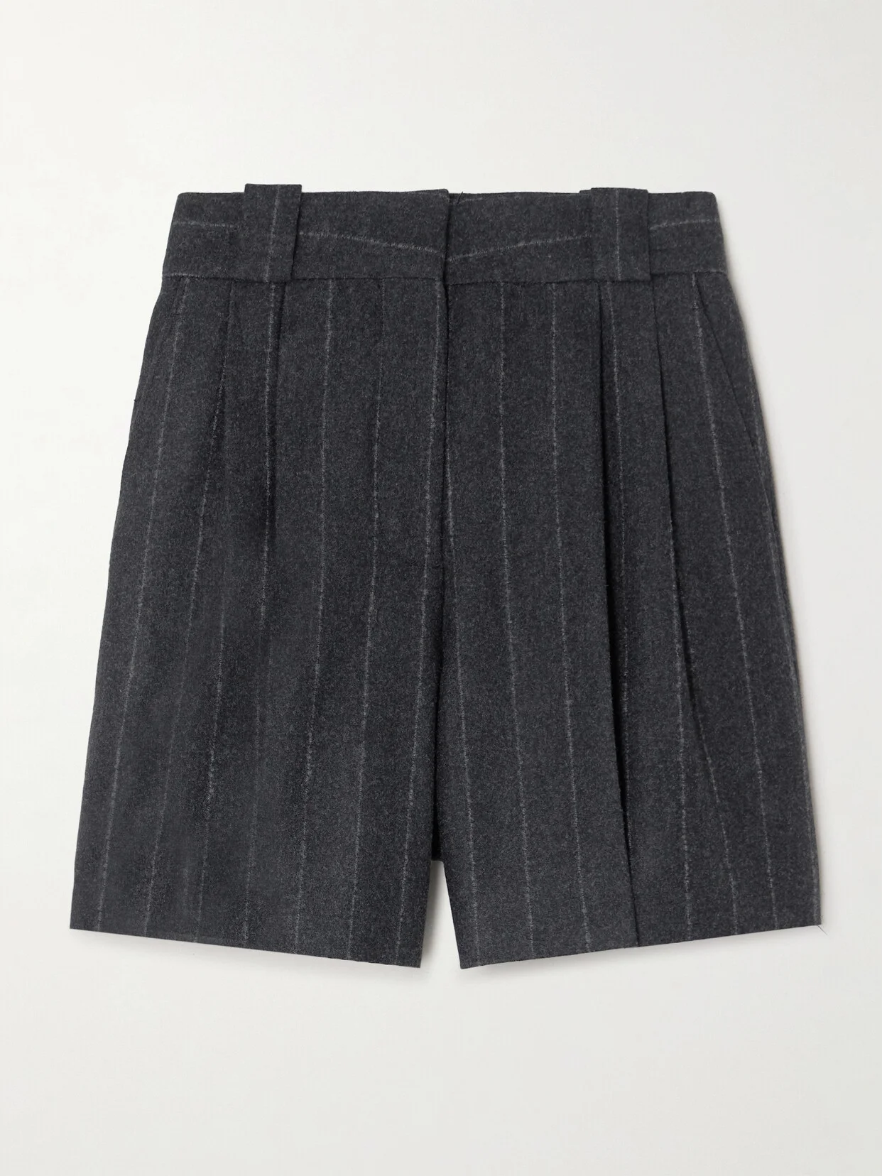Ferien Pleated Pinstriped Wool And Cashmere-blend Shorts