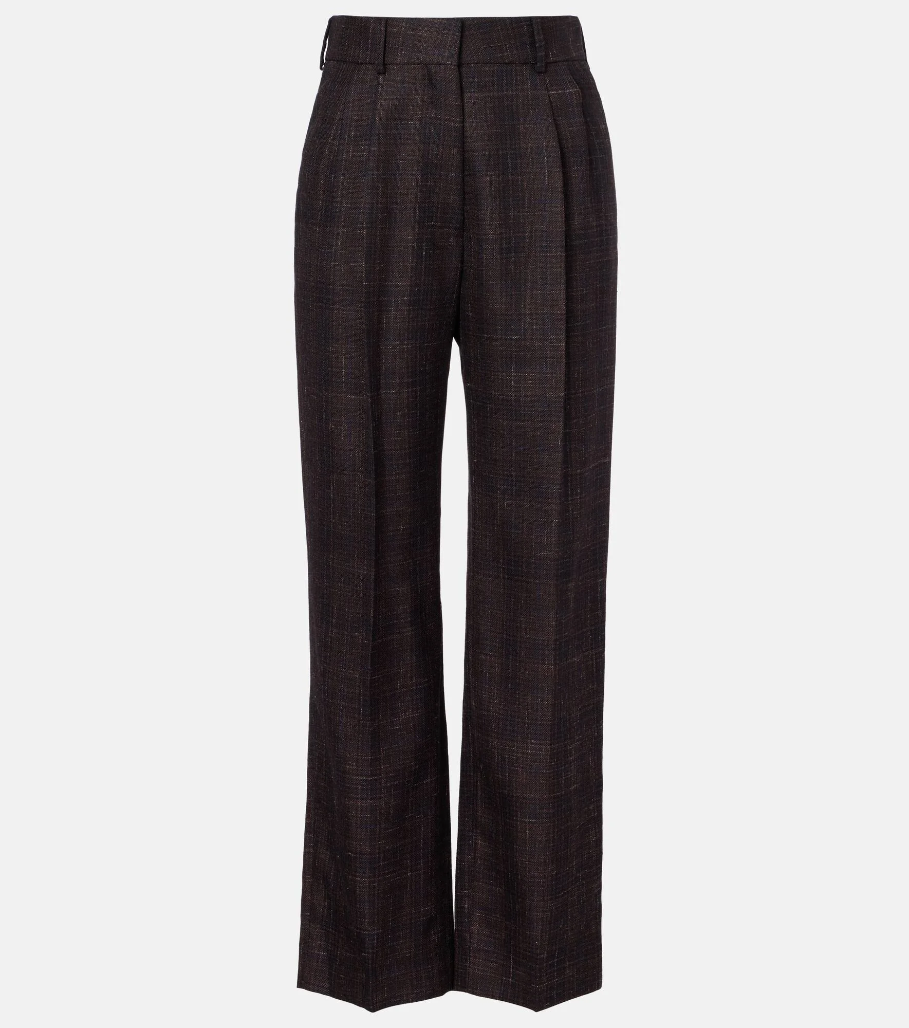 Blaze Milano fuses traditionally feminine and masculine codes to create inspiring styles with enduring appeal. Tailored to a wide-leg silhouette, the Fox pants are crafted from wool and silk and finished with a checked motif. Product Details - Material: 81% wool, 11% silk, 8% linen - Care instructions: dry clean - Made in Italy - Color: brown - Designer color name: Chocolate - Lining: 100% viscose - Belt loops - Pockets: slant pockets, back pocket - Closure: zipper fly, button and hook fastenings - Item number: P01137837 Size & Fit - True to size - Non-stretchy fabric - Wide-leg - The model seen in the picture is 178cm-5'10" and wearing a size 1