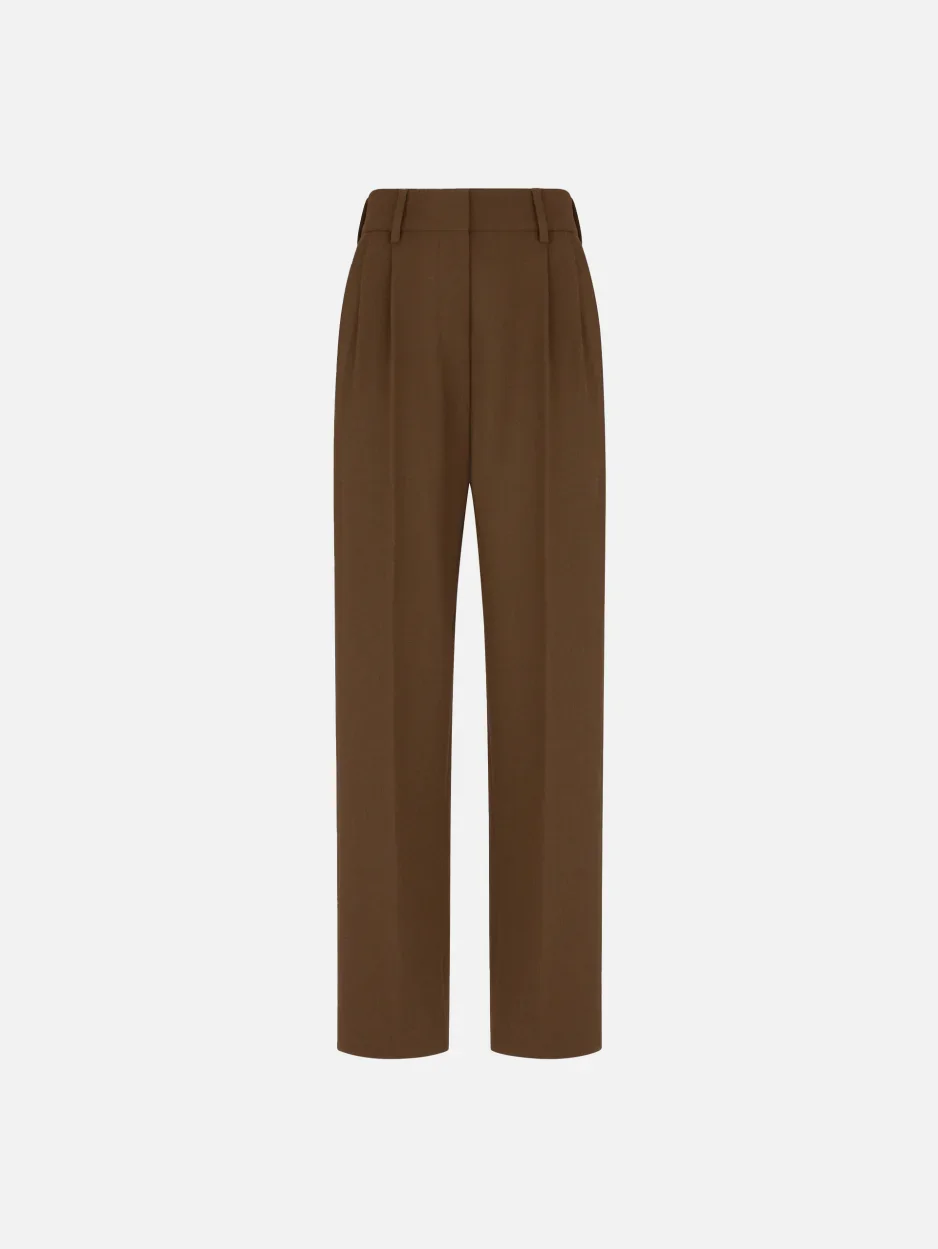 Women’s straight-leg pleated trousers in brown wool crepe Clean, tailored lines define the Fox Pants, crafted in wool crepe in a sophisticated chocolate shade. The high-rise waist and front pleats enhance the construction of this BLAZE Milano signature style. Versatile and refined, they are ideal for impeccable daytime looks, paired with the matching jackets from the collection. - High-rise - Tailored straight-leg cut - Front pleats - Front crease - Concealed zip and hook fastening - Belt loops - Decorative back Smiley pocket - Dark chocolate lining with logo motif 100% Virgin wool Lining: Viscose Made in Italy