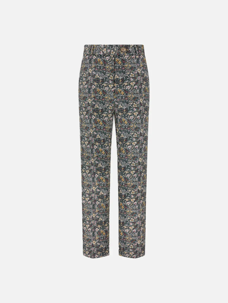 Women’s high-rise floral silk trousers An all-over delicate floral print from the Mantero archives — the historic Como-based textile excellence — defines the Golette Nana Pants in silk crepe. Designed with a high-rise waist, straight leg, pleats, and a central crease, this style offers a fluid fit with a light, airy handfeel. Pair with the Golette Camarillo Shirt for a romantic, sophisticated total look. - High-rise, tailored cut - Straight leg, ankle length - Front crease - Concealed zip fastening, with internal hook and four-hole tortoiseshell-effect buttons engraved with the brand’s name - Belt loops - Decorative back Smiley pocket 100% Silk Made in Italy