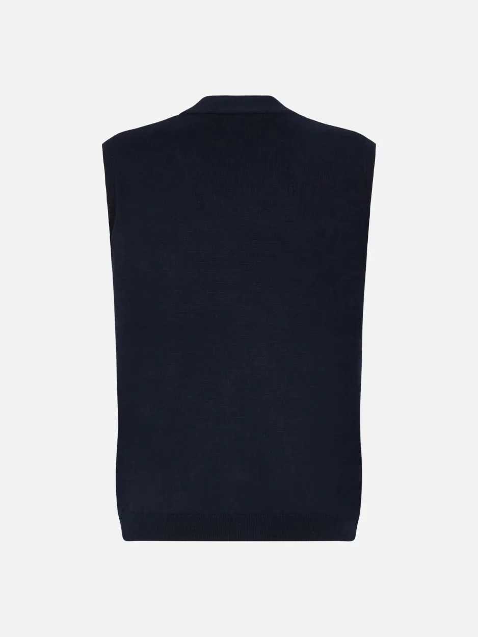Women’s vest in navy wool, silk and cashmere Classic navy is elevated by gold buttons in the Maine Gilet by BLAZE Milano. Crafted from a soft blend of wool, cashmere and silk, it can be worn elegantly on its own or layered under a blazer, taking its cue from refined menswear tailoring. - Relaxed fit - V-neck - Gold-tone buttons with embossed logo - Ribbed hem 70% Wool 20% Silk 10% Cashmere Made in Italy