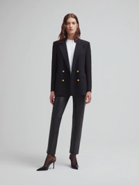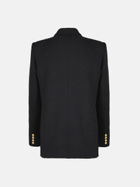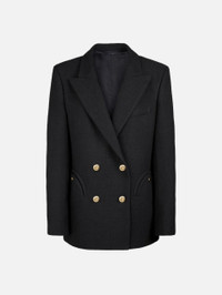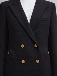 Double-breasted oversize cotton tweed black blazer Sharp-shouldered and offering a roomy fit, the Missy Black Everynight Blazer is made from a black cotton blend with a distinctive textured finish. It can be paired with the matching skirt as a warmer-weather suit. - Double-breasted - Cut for a boxy fit with oversized lightly padded shoulders - Black coloured lining - Gold metal loden buttons - Peak lapels - Two back vents - Smiley pockets and four internal pockets 68% Cotton 27% Polyester Lining: 100% Viscose Made in Italy