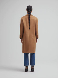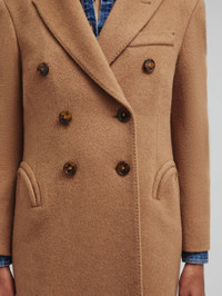Women’s double-breasted coat in camel The ‘Mylius’ Overcoat is cut from the finest camel hair for a cozy, oversized fit that ensures easy layering over shirts and chunky sweaters. Buy once, love for a lifetime. - Designed for an oversized fit, with lightly padded shoulders - Camel hair felt - Camel coloured lining - Tortoiseshell-effect buttons - Peak lapels - Smiley outer pockets and four internal pockets 100% Camel Hair Lining: 100% Viscose Made in Italy