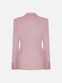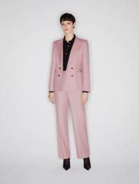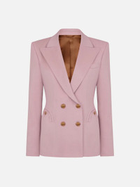 Double-breasted hourglass wool and cashmere pink blazer The double-breasted Mystere blazer has the same classic hourglass shape as BLAZE Milano’s Charmer models, with accentuated shoulders and a nipped-in waist. In a delicate pink wool/cashmere blend, it pairs effortlessly with the matching trousers. - Double-breasted - Designed for a slim fit - Lightly padded shoulders - Hourglass shape - Hazelnut lining with crest motif - Peak lapels - External Smiley pockets and one internal pocket 94% Virgin Wool 6% Cashmere Lining: 100% Viscose Made in Italy