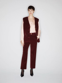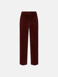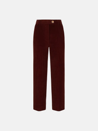 High-rise straight-leg corduroy burgundy pants In burgundy corduroy, these straight-leg, high-waisted trousers are finished with a fly-front closure and a tortoiseshell-effect button, while a single Smiley pocket in back adds a distinctive touch. A perfect match for the coordinating gilet. - High waist - Tailored straight-leg cut - Front pleats - Belt loops - Concealed zip and hook fastening - Back Smiley pocket 100% Cotton Lining: Viscose Made in Italy