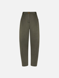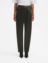 Women’s dark forest green satin carrot trousers The Sorraia Pants balance elegance and ease with their signature carrot cut: relaxed at the hips and narrower towards the hem. Forest green satin, a front crease, and a tortoiseshell button add a refined touch to this versatile style, designed to be worn with the coordinated pieces of the Fall Winter 2025 women’s collection — the Nightbreak Blazer and the Shamo Bolero. - High-rise, carrot fit - Relaxed fit at hips, tapered at hem - Front pleat - Zip fastening with tortoiseshell-effect button logo-engraved on brass base - Belt loops - Side slit pockets - Dark chocolate lining with logo motif 52% Viscose 48% Acetate Lining: Viscose Made in Italy