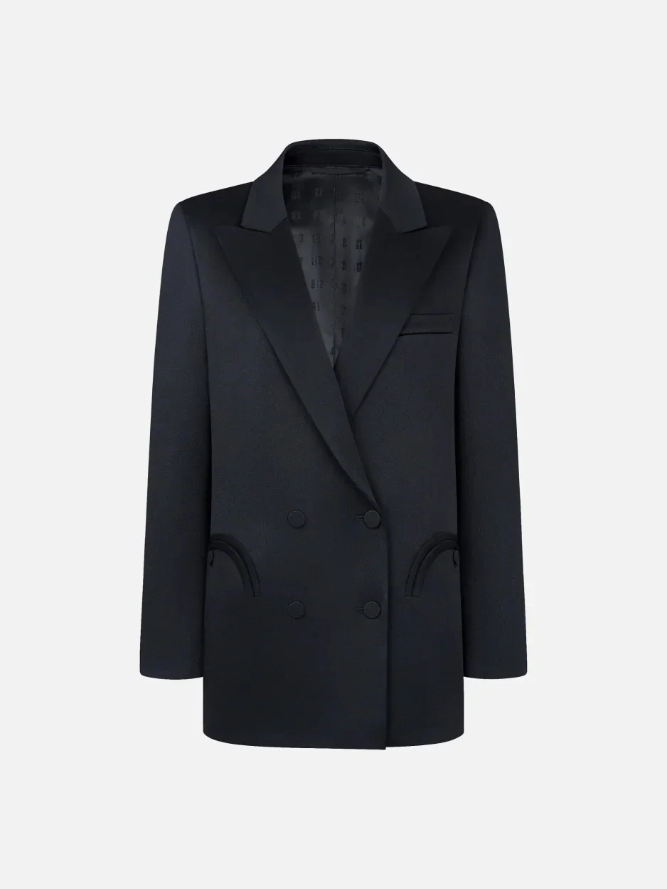Women’s oversized double-breasted blazer in navy satin