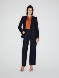 Pleated straight-leg wool and mohair navy pants Crafted from a light wool-mohair blend in classic navy blue, the First Class Navy Fox Pants feature a high-rise, straight-cut design and a single Smiley back pocket. Ideal as an office-ready suit when paired with the matching blazer. - High-rise, tailored for a straight-leg fit - Front pleats - Belt loops - Concealed zip and hook fastening - Smiley back pocket 71% Virgin Wool 29% Mohair Made in Italy