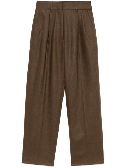 Renard Fox trousers Highlights - Chocolate brown - Concealed front button, hook and zip fastening - Belt loops - Two side slash pockets - Rear slit Made in Italy Composition Lining: Viscose 100% Outer: Silk 100% SIZE & FIT Model measurements Height 5 ft 11 in(1.8 m) Bust/Chest 31.49 in(80 cm) Hips 35.82 in(91 cm) Waist 24.8 in(63 cm) FittingInformation Designed for a tapered fit, these trousers allow for a close fit at the waist and a loose unrestricted fit over the leg with a closer fit towards the ankle Made from a midweight non-stretch fabric