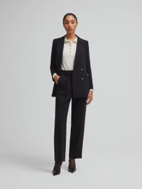 Pleated straight-leg wool black pants