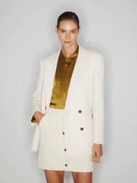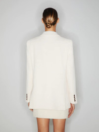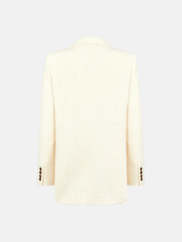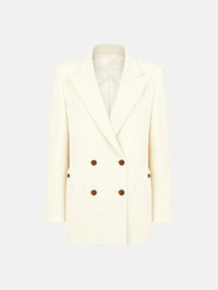 Double-breasted oversize cotton tweed white blazer Sharp-shouldered and offering a roomy fit, the Missy Cream Everynight Blazer is made from a cream-coloured cotton blend with a distinctive textured finish. It can be paired with the matching skirt as a warmer-weather suit. - Double-breasted - Cut for a boxy fit with oversized lightly padded shoulders - Cream coloured lining - Glossy brown buttons - Peak lapels - Two back vents - Smiley pockets and four internal pockets 68% Cotton 27% Polyester Lining: 100% Viscose Made in Italy
