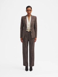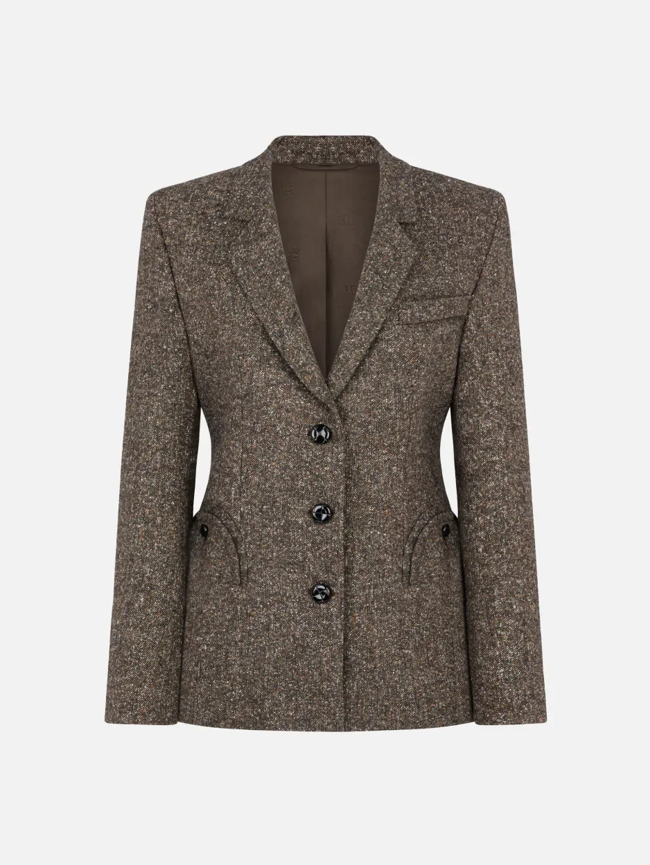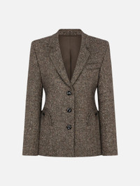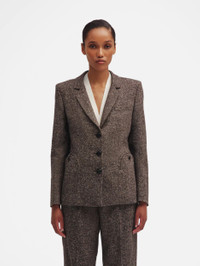 Women’s hourglass single-breasted blazer in brown melange fabric With its clean, feminine lines and elegant hourglass silhouette that highlights the waist, the Akira Blazer is crafted from a textured fabric with masculine inspiration. The result is a refined single-breasted, three-button style, ideal for the office with the matching Fox Pants, yet equally suited to more relaxed weekend looks. - Single-breasted - Slim fit, hourglass shape - Narrow lapels - Lightly padded shoulders - Black loden-effect buttons - External Smiley pockets, one chest slit pocket and four internal pockets - Back vent - Dark chocolate lining with logo motif 32% Polyester 28% Acrylic 24% Wool 7% Cotton 5% Silk 4% Other fibers Lining: Viscose Made in Italy