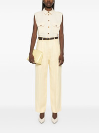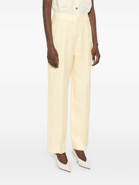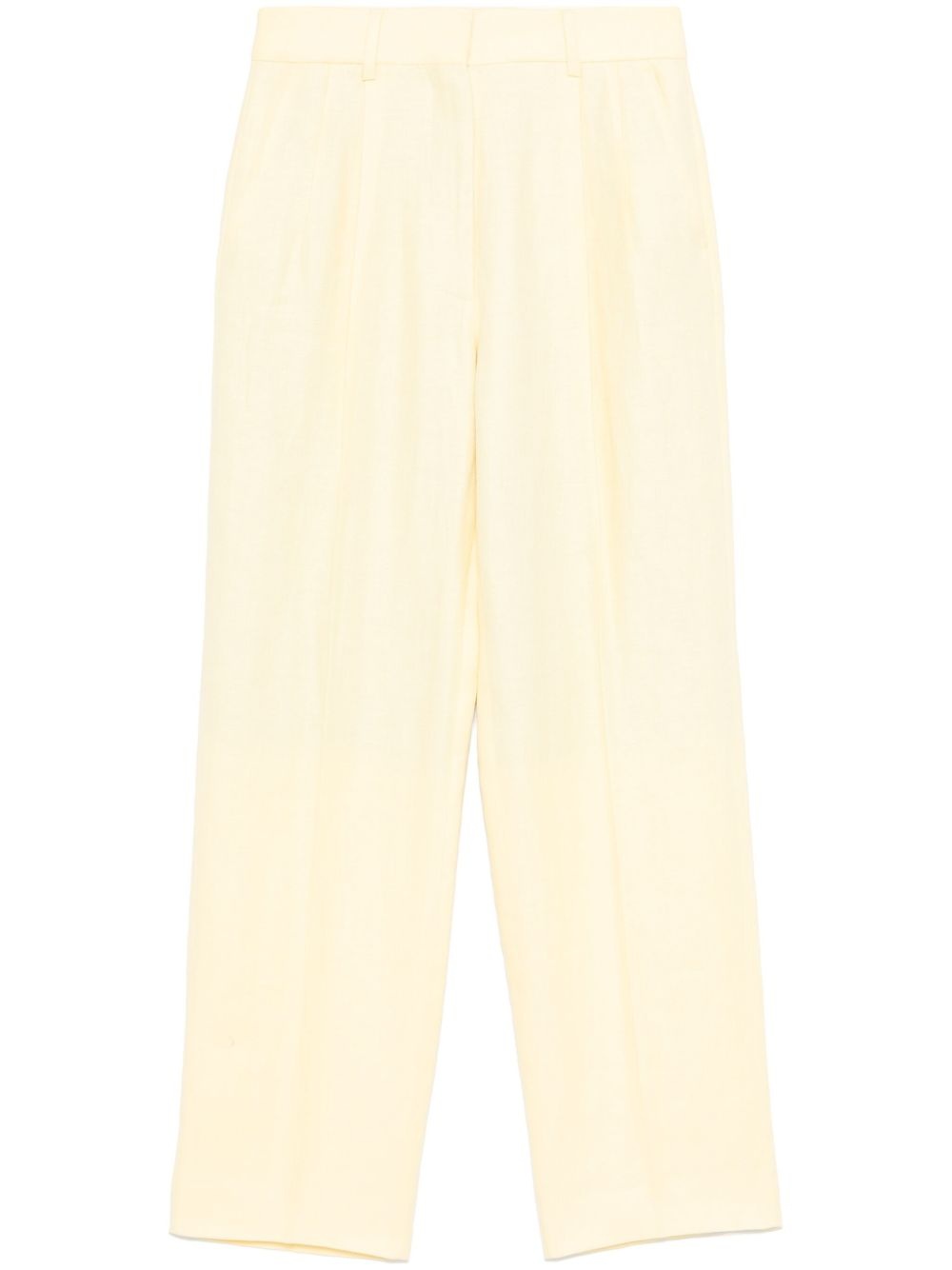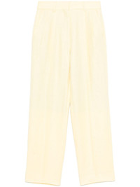 Clarity trousers Highlights - Light yellow - Concealed front fastening - Belt loops - Two side slit pockets - Box-pleat detail Made in Italy Composition Lining: Viscose 100% Outer: Linen/Flax 100% SIZE & FIT Model measurements Height 5 ft 11 in(1.81 m) Bust/Chest 32.67 in(83 cm) Hips 36.22 in(92 cm) Waist 24.4 in(62 cm) FittingInformation Designed for a straight-leg fit, these trousers allow for a close fit at the waist and an unrestricted, comfortable fit over the leg Made from a midweight non-stretch fabric