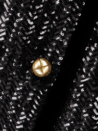 EDITORS'NOTES Blaze Milano's jacket recalls classic Parisian styles sported in the '50s. It's tailored in a collarless shape and trimmed with cotton-velvet that accentuates the sequins' glisten with its rich texture. SIZE & FIT Model measurements: - Size 00 = XXS, 0 = XS, 1 = S, 2 = M, 3 = L, 4 = XL - Fits true to size, take your normal size - The model is wearing a size larger to achieve a boxy fit - Designed for a relaxed fit - Mid-weight, heavily embellished, non-stretchy fabric - Model is 177cm/ 5'10" and is wearing the designer's size 1 - Bust: 80cm/ 31.5" - Waist: 65cm/ 25" - Hip: 89cm/ 34.5” DETAILS & CARE - Black stretch-polyester and cotton-velvet - Button fastenings through front - 97% polyester, 3% spandex; trim: 100% cotton; lining: 100% viscose - Dry clean