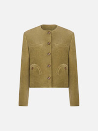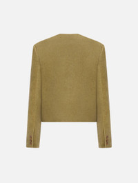 Women’s khaki green velvet bolero jacket The bon ton allure of the Shamo Bolero is elevated by the Jealousy Frog velvet, artisanally crafted to create a vintage effect and rich, irregular texture. Pair it with the matching Coci Mini Skirt for timeless charm. - Oversized fit, cropped design - Lightly padded shoulders - External Smiley pockets, two chest slit pockets and one internal pocket - Tortoiseshell-effect loden-effect buttons - Artisan-treated fabric - Dark chocolate lining with logo motif 100% Cotton Lining: Viscose Made in Italy