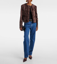 The Shamo Bolero jacket from Blaze Milano is crafted in Italy from cotton-blend velvet and comes with a buttoned front. Look closely to appreciate the curved "Smiley" pockets on the hips. Product Details - Material: 68% cotton, 32% viscose - Care instructions: dry clean - Made in Italy - Designer color name: Chocolate - Item color: brown - Lining: 100% viscose - Sleeve lining: 100% viscose - Pockets: slant pockets, welt pockets, internal pockets - Shoulder pads - Closure: buttoned front - Cuff: three buttons - Includes: garment bag - Item number: P01059405 Size & Fit - True to size - Straight fit - Non-stretchy fabric - Falls to the hip - The model seen in the picture is 178cm-5'10" and wearing a size 1