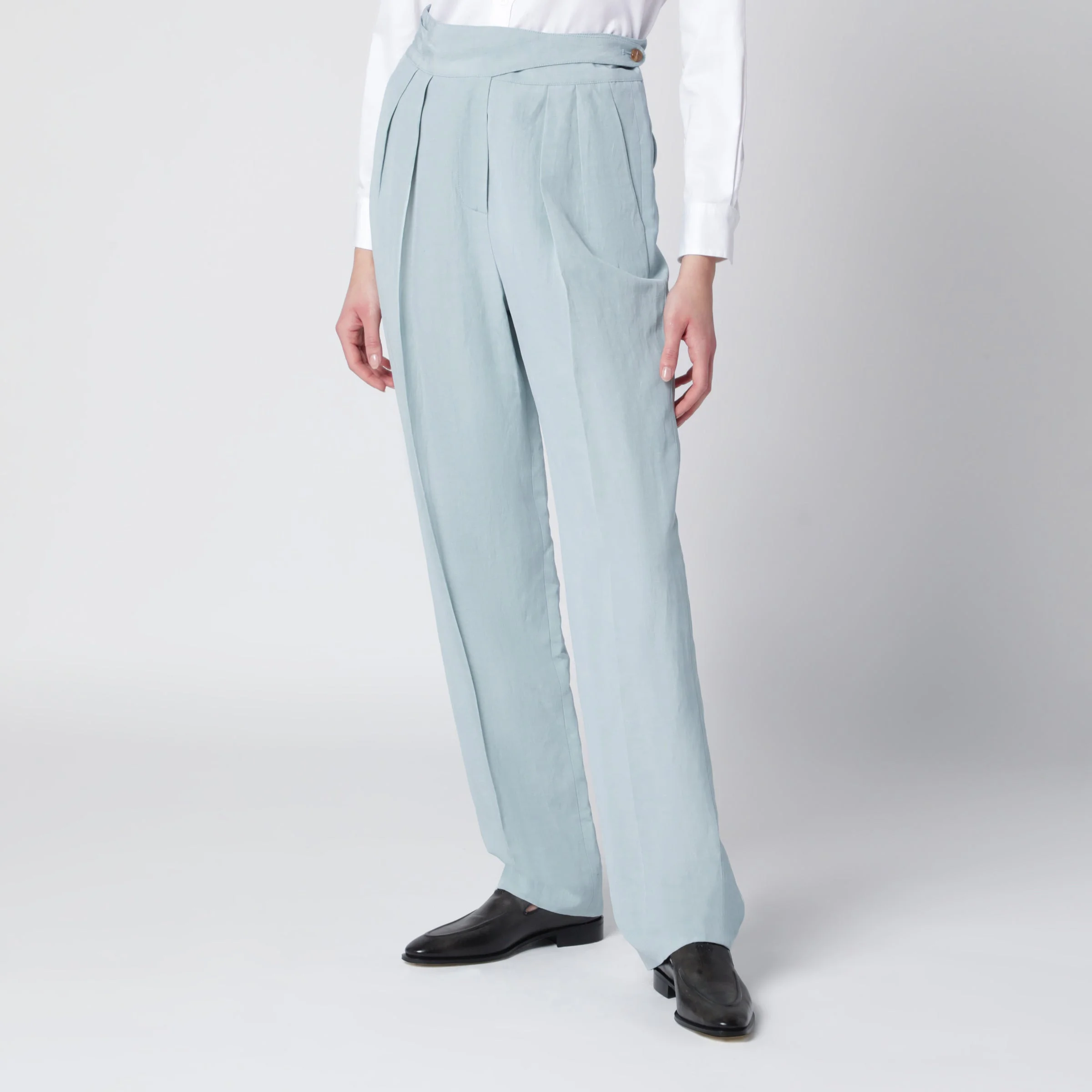 Tomo light blue trousers in silk and linen