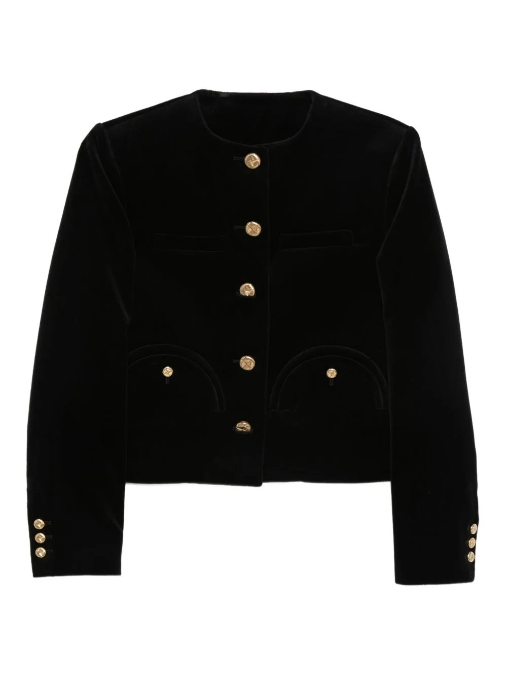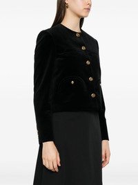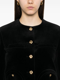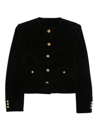 button-fastening cotton-blend jacket Highlights - Black - Velvet texture - Gold-tone buttons - Round neck - Long sleeves Made in Italy Composition Lining: Viscose 100% Outer: Cotton 100% SIZE & FIT Model measurements Height 5 ft 10 in(1.78 m) Bust/Chest 33.85 in(86 cm) Hips 36.61 in(93 cm) Waist 26.77 in(68 cm) Washing instructions Dry Clean Only