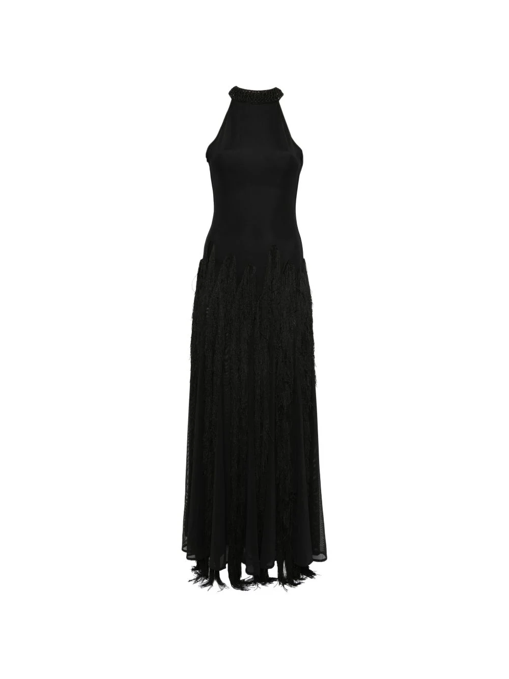 fringed halterneck maxi dress