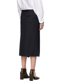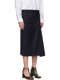 Plain-woven wool midi skirt. · Wrap construction · Four-pocket styling · Adjustable exposed zip fly · Full satin lining Supplier color: Dark blue Body: 100% wool. Lining: 100% polyester. Made in France 252852F092001