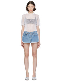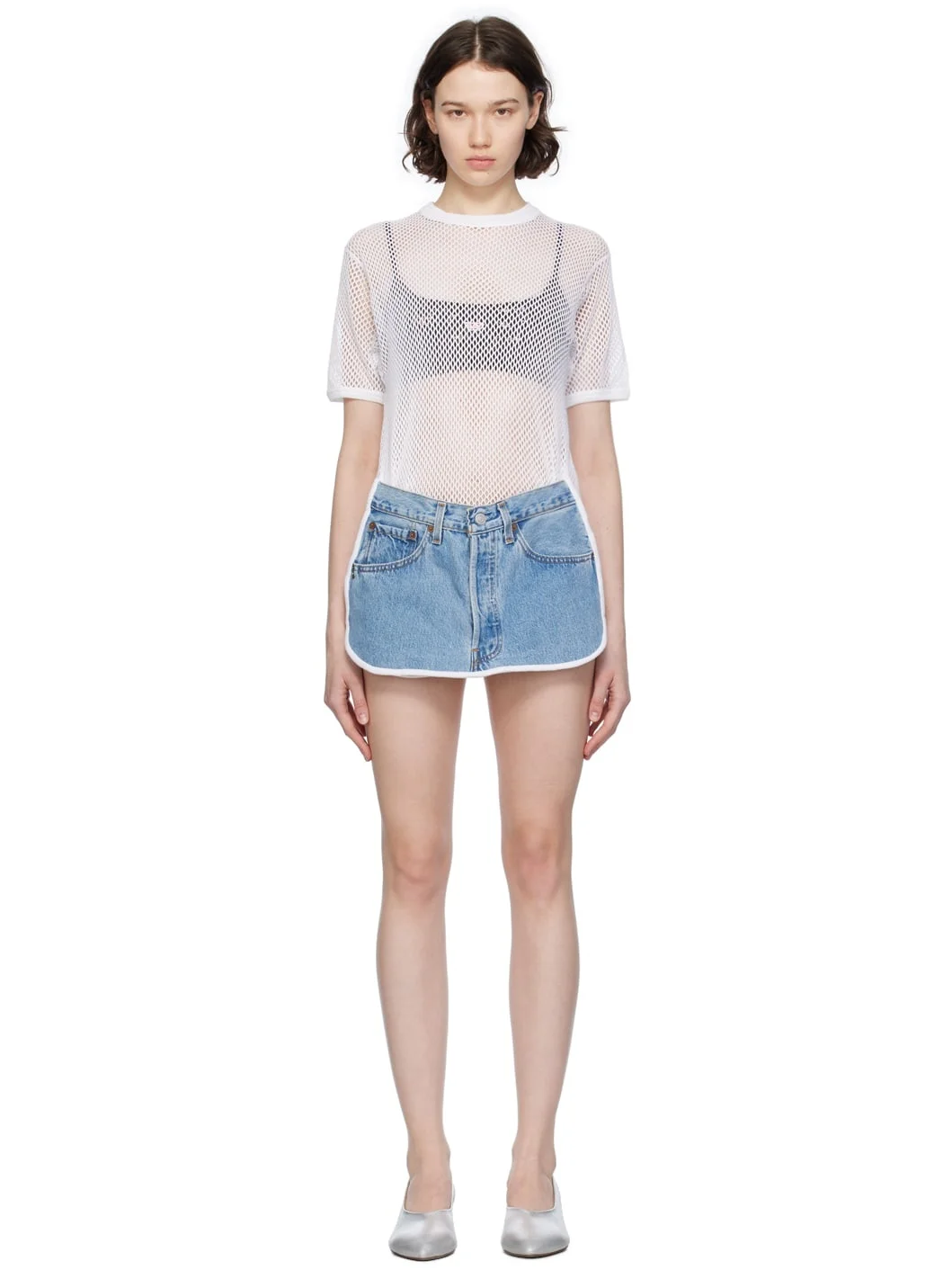Cotton mesh and upcycled non-stretch denim dress. Rib knit trim and fading throughout. · Layered construction · Crewneck · Three-pocket styling · Zip-fly · Shirttail hem · Contrast stitching in tan Supplier color: Denim blue/White 100% cotton. Made in Germany 241852F052000