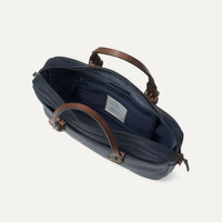 HANDMADE BUSINESS BAG The new Folder bag, made from vegetable tanned leather, can be carried in the hand or over the shoulder. It is a very practical business bag with clever features that make travelling easier: a built-in sleeve for a 16-inch laptop Macbook Pro, an inside zippered pocket and two outside pockets. It comes with a removable leather strap which has a comfortable leather shoulder pad lined with natural felt. The zippered pocket at the back has been specially designed to attach the bag to your suitcase’s telescopic handle. The Bleu de Chauffe label, signed and dated by the artisan who created the bag, is sewn onto an inside zippered pocket. Size: L 38 x H 28 x W 6 cm Handmade in France. MATERIALS Today, more than 90% of leather in the world undergoes a chrome tanning process which uses heavy chemical components. Bleu de Chauffe has a different approach. Our leather is vegetable tanned which ensures better quality and more sustainable leather, a soft natural touch, and a patina which improves over the years. - Full grain leather, vegetable tanned and water resistant. - Natural finish, soft to the touch. - ‘Velvet’ finish on the reverse side of the leather. - Removable leather strap and comfortable leather shoulder pad lined with natural felt. - Leather handle making it comfortable to carry by hand. - Removable inside zippered cotton pocket. - Integrated felt sleeve for laptops. - Two outside pockets with magnetic button closures. - The zippered pocket at the back is specifically designed to attach the bag to a suitcase’s telescopic handle. - The Bleu de Chauffe Logo with a brass finish, inspired by 20th century French faucets. The work-wear signature. SIZE External dimensions: L 38 x H 28 x W 6 cm Internal dimensions of main compartment: L 38 x H 26 x P 5,5 cm (for laptops up to 16 inches) Internal dimensions of felt pocket: L 37 X H 26 (to fit 13’’, 14’’, and 15’’ laptops, compatible with 16’’ MacBook Pro) We recommend measuring your computer to check it will fit Strap dimensions : Adjustable length: 117 cm to 132 cm Drop length*: 42 cm to 50 cm Shoulder strap width: 5 cm *the drop length is the distance between the top of the bag and the top of the strap The shoulder strap has been designed to offer great flexibility of use with its adjustable length, allowing it to be worn over the shoulder or across the body as you prefer. The felt-lined shoulder pads are 5 cm wide and provide balanced weight distribution for maximum comfort, even during prolonged use.