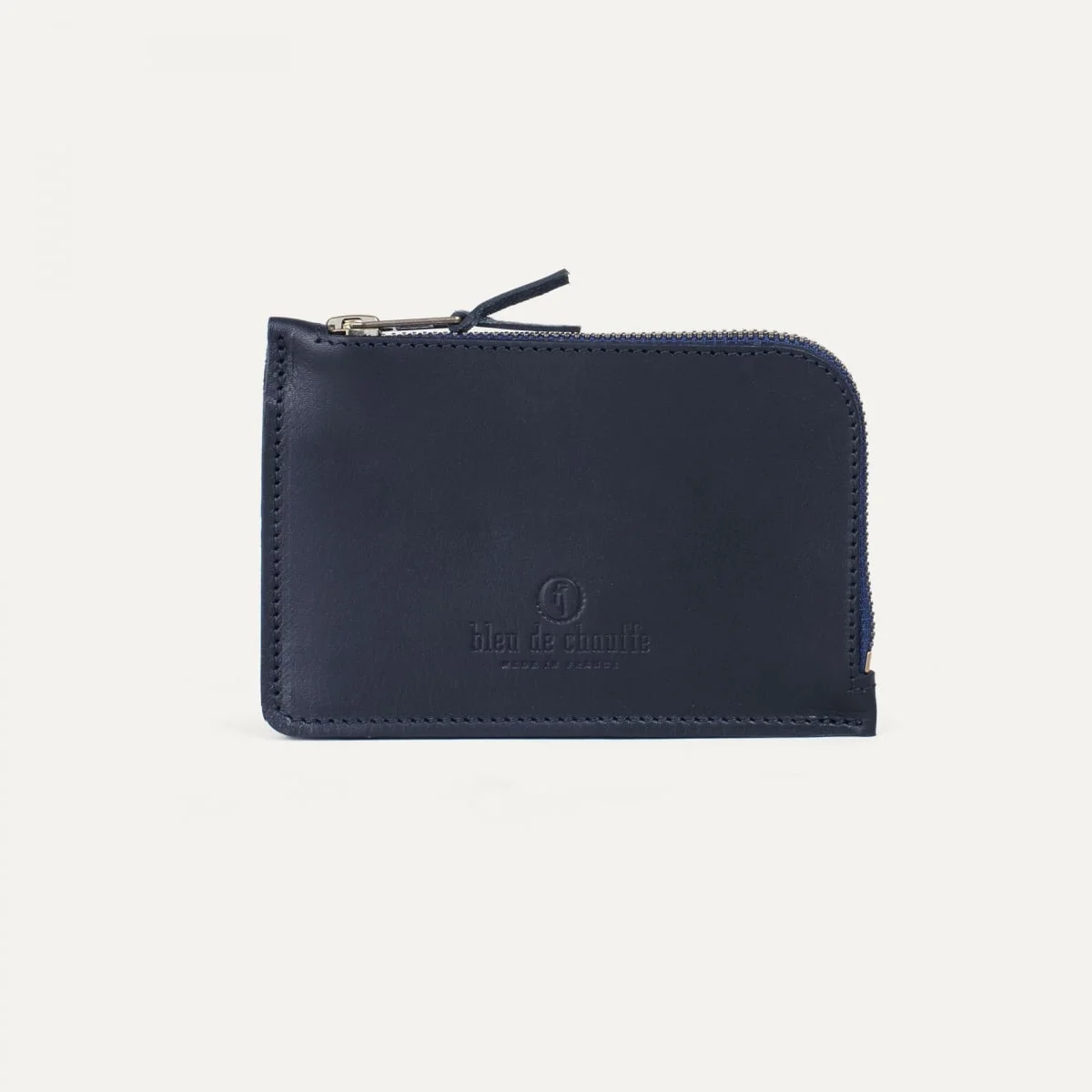 CHIC COIN PURSE Made from supple vegetable tanned leather, the Pognon purse (size L) is functional, practical and simple. Its distinctive blue zip allows you to easily access the 3 inside compartments designed to hold credit cards, bills, and coins. Size : 13,5 cm x 9 cm Made in France. MATERIALS While 90% of the leather produced in the world is tanned using Chrome or heavy-duty chemical agents, at Bleu de Chauffe we have decided to go against the grain, choosing the only alternative manufacturing process: vegetable tanning, a natural method which makes the leather more hard-wearing and gives it a natural look and feel, as well as a beautiful patina over the years. - Vegetable-tanned leather using natural agents such as mimosa, chestnut, and acacia. - Natural soft finish. - Sanded velour finish on the reverse side. - YKK Excella zip, polished with a bronze finish. SIZE - Size : 13,5 cm x 9 cm x 0,8 cm - 2 compartments for your ID, credit cards, small tickets as subway or bus tickets. - 1 compartment for coins.