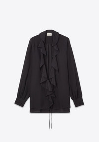 Blouse with low-cut jabot collar with drawstring closure. MORE DETAILS - 100% Silk Taffetas - Relaxed fit Gatherings back - Puffs sleeves with two buttons cuffs