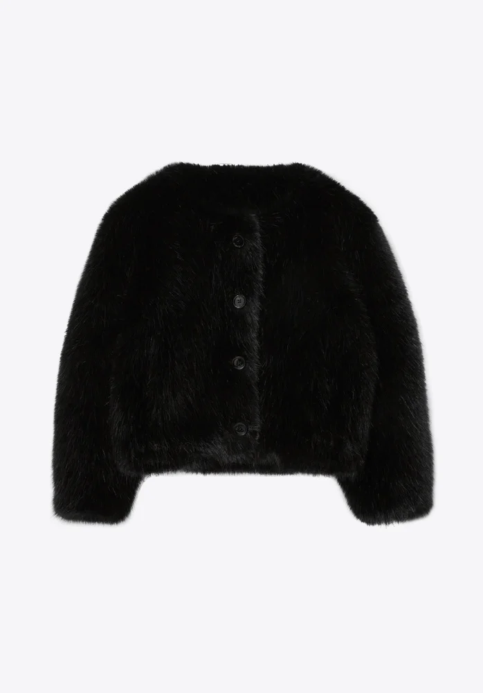 Short coat with round neck in animal free fur. MORE DETAILS - 55%modacrylic 36%acrylic 9%polyester - Regular straight cropped fit - Four button front closer - Two side pockets - 100% silk lining - Round neck - Made in Italy
