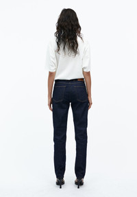 A classic straight leg and iconic style. Slim but not tight up at top and straight through the knee down to hem, it lengthens your legs and gives that modern 60s inspired straight leg silhouette.