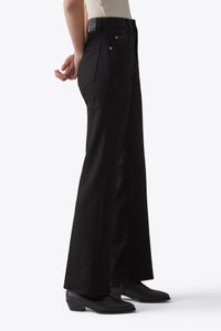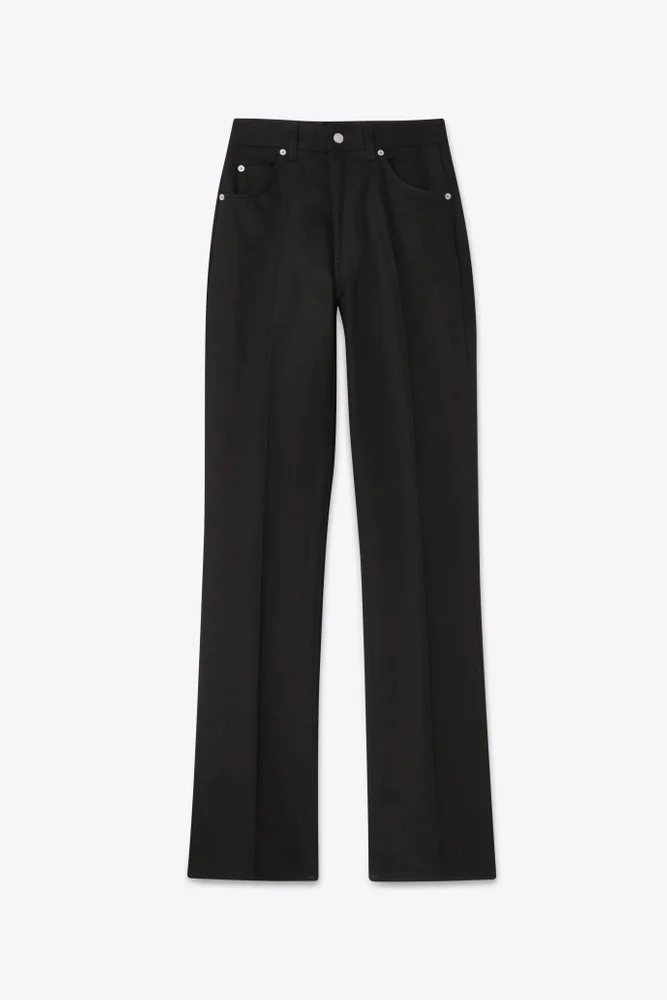 70s inspired high waisted flare jean with an elevated modern look. MORE DETAILS - Super clean truly black denim with a sophisticated look. - Flare leg – fitted leg with a subtle flare at the hem - High rise - 5-pocket styling - Zip fly - 6 belt loops – 2 beltloops at CB - Denim 100%co - organic cotton - Model is 179 cm / 5′87 and wears a size 27/32