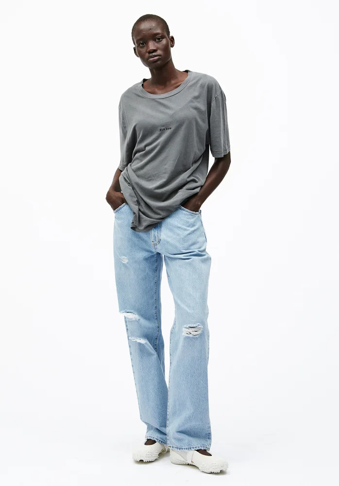 Iconic leg shape with the modern effortlessly cool feel, a jean with a little bit of ’90s attitude. These jeans sit high on your waist features a straight leg and are relaxed through your leg down to the hem MORE DETAILS - An authentic well used vintage look with holes and distressed elements and the authentic vintage hand feel. - High waist - Straight leg - Relaxed thigh & knee with a loose straight leg silhouette. - 5-pocket styling - Zip fly - 6 belt loops – 2 beltloops at CB - Denim 100%co - organic cotton - Model is 179 cm / 5′87 and wears a size 27/32