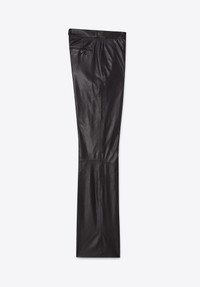 70s inspired bootcut tailored pant in soft lamb leather. MORE DETAILS - 100% Soft lamb leather - Modern bootcut - Zip and button closure - Side seam pockets - Two jetted pockets at back - Waist band with belt loops - Half lined