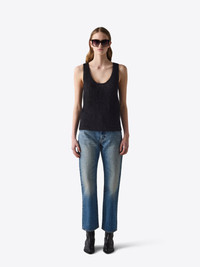 Knitted tank top with scoop neckline. MORE DETAILS - Black with an open knit structure - 73% Kids mohair 27% Silk