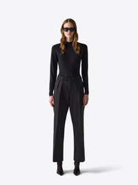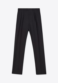 Flat front double pleated 50s straight cut pant in wool mohair. MORE DETAILS - 100% Wool mohair - Straight pant - Double front pleats - Zip and button closure - Side seam pockets and two front pleats - Two jetted pockets at back - Waist band with belt loops - Decorative AMF stitches