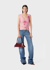 - ALPACA BLEND YARN - DIGITAL ROSES PATTERN PRINT - V-NECK - STRAPS - RIBBED PROFILES - REGULAR FIT DETAILS COLORS: PINK