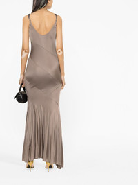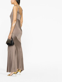 asymmetric-design pleated maxi dress Highlights - Taupe brown - Asymmetric design - Decorative stitching - Pleat detailing - Knot detailing - Sweetheart neck - Open back - Sleeveless - Thin shoulder straps - Asymmetric hem Made in Italy Composition Lining: Polyamide 73%, Elastane 27% Outer: Viscose 100% SIZE & FIT Model measurements Height 5 ft 10 in(1.77 m) Bust/Chest 32.67 in(83 cm) Hips 35.43 in(90 cm) Waist 23.62 in(60 cm) FittingInformation Designed for a close fit throughout Made from a midweight non-stretch fabric, this piece offers minimal elasticity when worn This piece fits true to size – take your usual size Washing instructions Dry Clean Only