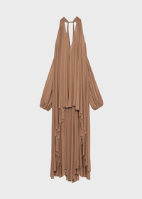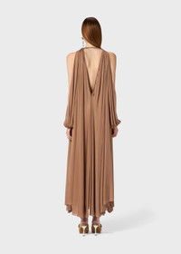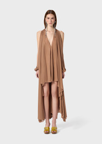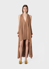 ASYMMETRICAL VISCOSE DRESS WITH A PLUNGING V-NECKLINE AT FRONT AND BACK; SHOULDER-BARING SLEEVE CUTOUTS. COMPOSITION: 100%VI - VISCOSE GEORGETTE - ASYMMETRIC LINE - PLUNGING V-NECKLINE AT FRONT AND BACK - LONG SLEEVES WITH CUTOUTS REVEALING THE SHOULDERS - DROPPED SHOULDERS - LOOSE FIT DETAILS COLORS: BROWN