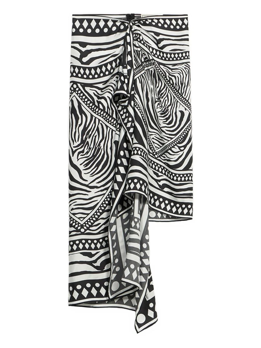 asymmetrical foulard-print skirt Highlights - White and black - Twill texture - Foulard print - Asymmetric hem Made in Italy Composition Viscose 100% Washing instructions Machine Wash