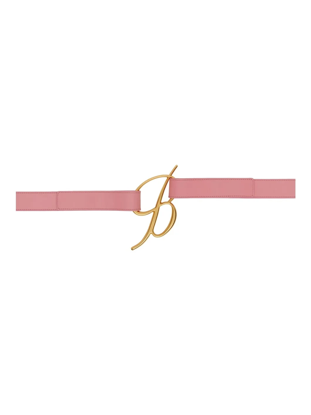 Buffed leather belt in pink. · Logo hardware at post-stud fastening · Gold-tone hardware · W1" Supplier color: Bubblegum Leather. Made in Italy 241901F001004