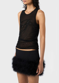 TULLE TOP WITH EMBROIDERY RHINESTONE B MONOGRAM
